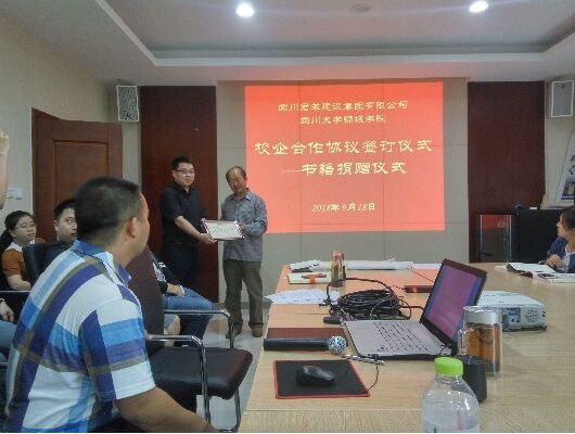 双方在深入洽谈后正式签署了相助协议,康志华院长代表学校正式向AG亚游授牌校企相助单位。为体现对锦城学子的关爱,杨卓总裁也代表AG亚游建设向图书馆捐赠四箱图书,寄语:“学校蒸蒸日上,学子桃李芳香”。